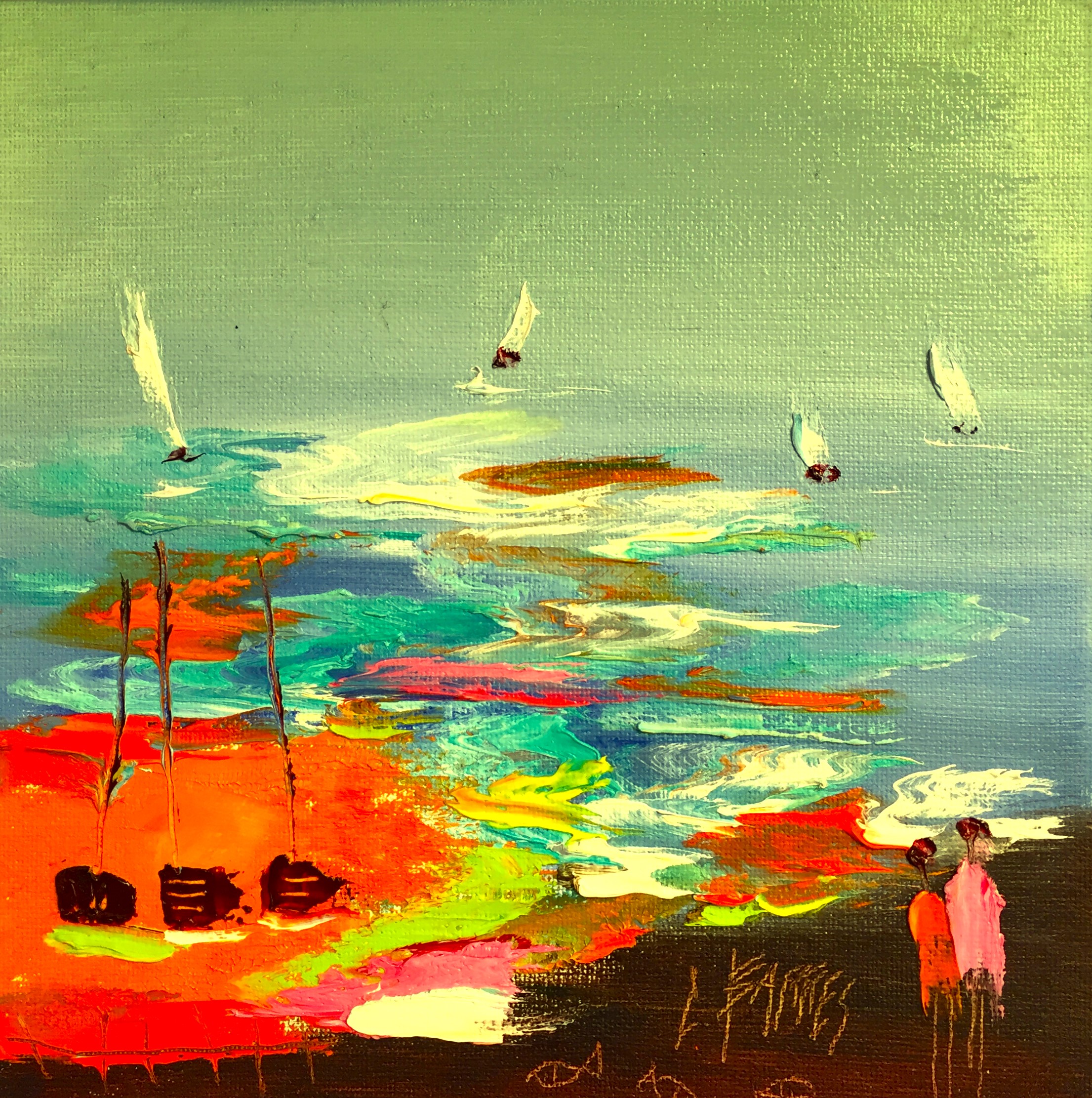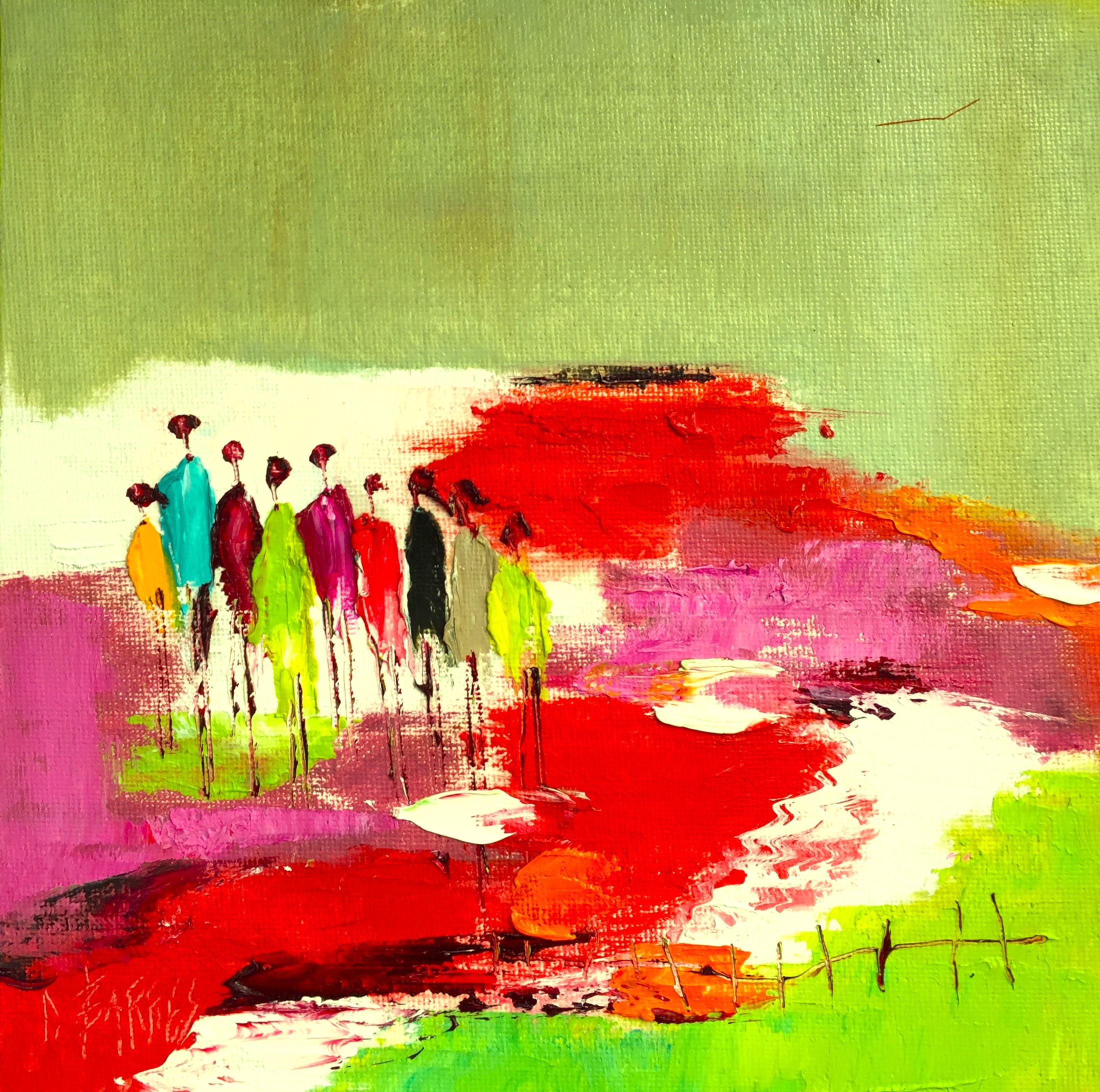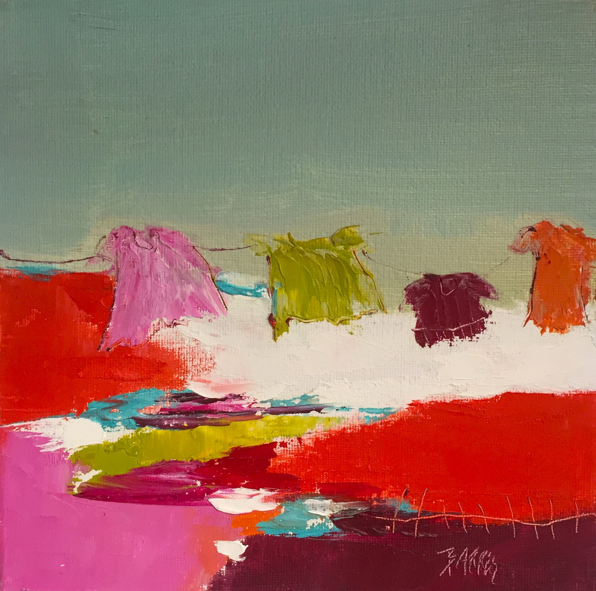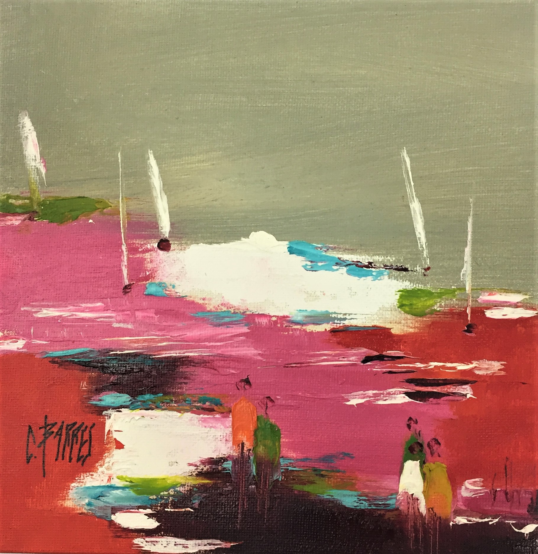 Christine Barrès s’engage dans l’abstraction avec pour format essentiel le carré et pour ligne de mire la couleur, le rythme et la matière. A la charnière de l’abstrait et du figuratif, son travail naît de la spontanéité, de la fantaisie, mais surtout de l’énergie.